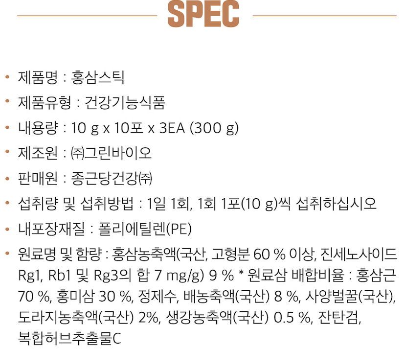 Chong Kun Dang Health Korea 6-year-old Red ginseng stick 1 box, 10g x 30 ea, total 300g